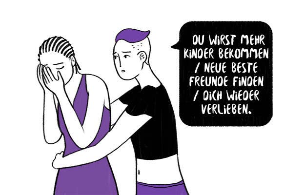 Wenn Leute sagen, dass Du weitermachen sollst, kannst Du manchmal denken, Das ist leicht für Dich zu sagen. Es ist nicht Dein Verlust. Trauer einen Zeitrahmen zu geben, ist fast unmöglich und überflüssig.